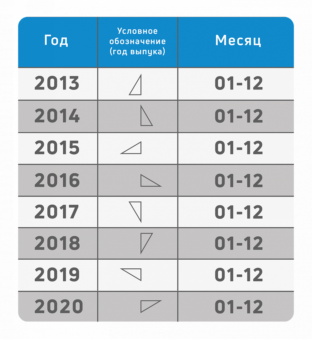 Трикутник позначає рік, а цифри місяць, коли цей ніж було зроблено