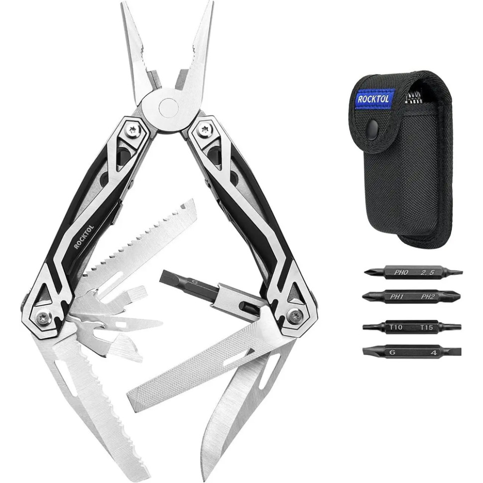 Мультитул Rocktol SK01 оснащений багатьма інструментами, які роблять його універсальним помічником у різних ситуаціях. Ось перелік опцій інструментів, включених до цього мультитула: